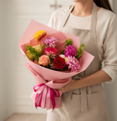 Big, fancy bouquets will cost more because they need more flowers and work. If you think about simple hand-tied ones, they are usually cheaper.
