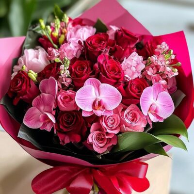 Combine flowers, chocolates, and keepsakes for a truly personal touch. For a classic romantic gesture, see our teddy bear with red roses in a heart box.
