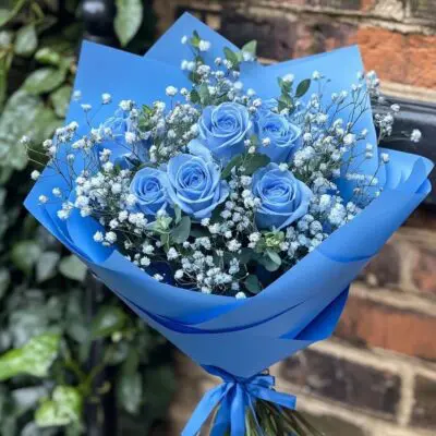 Blue Roses with Blue Baby’s Breath Bouquet | Blue Roses in Vancouver