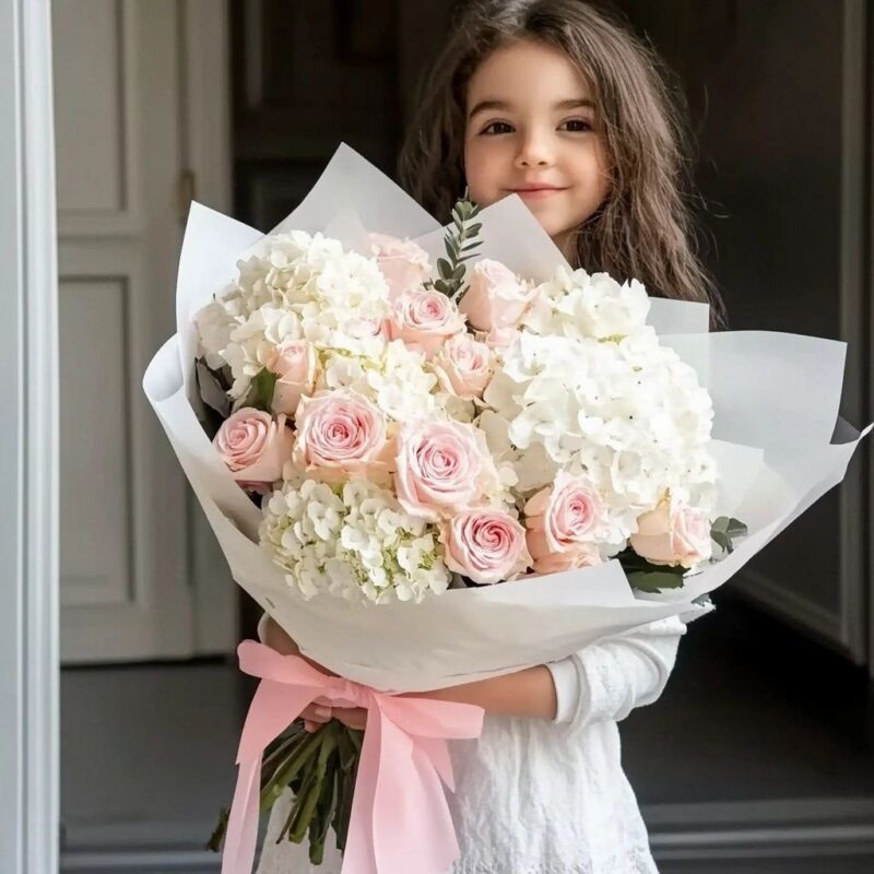 Soft as a lullaby and timeless as a classic melody, our โAngelโs Embraceโ bouquet captures the beauty of innocence and heartfelt sentiment. Crafted with plush ivory hydrangeas and delicate blush pink roses, this bouquet is the ultimate symbol of grace, purity, and affection. Whether youโre marking a baby shower, birthday, anniversary, or sending love โjust because,โ this arrangement is a heartwarming expression of gentle thoughtfulness.