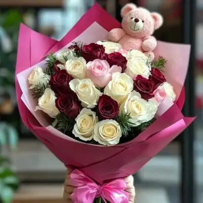 Unboxing is part of the pleasure. Your bouquet arrives cushioned in tissue and secured for travel, with stems neatly bound and heads protected. The first rustle of paper reveals the eucalyptus, then the ruffled roses, then the airy fillers that complete the picture. We include a handwritten note upon request and simple care tips that take seconds to read. Everything—from the wrap to the ribbon—has been chosen to complement the bouquet’s soft, earthy vibe.