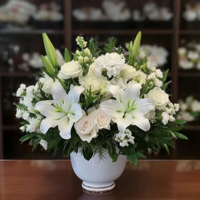 The symbolism of the cross arrangement brings added comfort to those grieving. It is not just a floral tribute, but a reminder of eternal peace and hope. Families often find solace in its presence, knowing it represents both remembrance of the loved one and the enduring strength of faith. For many, seeing the cross surrounded by soft white blooms brings a sense of quiet healing and reassurance during a difficult time.