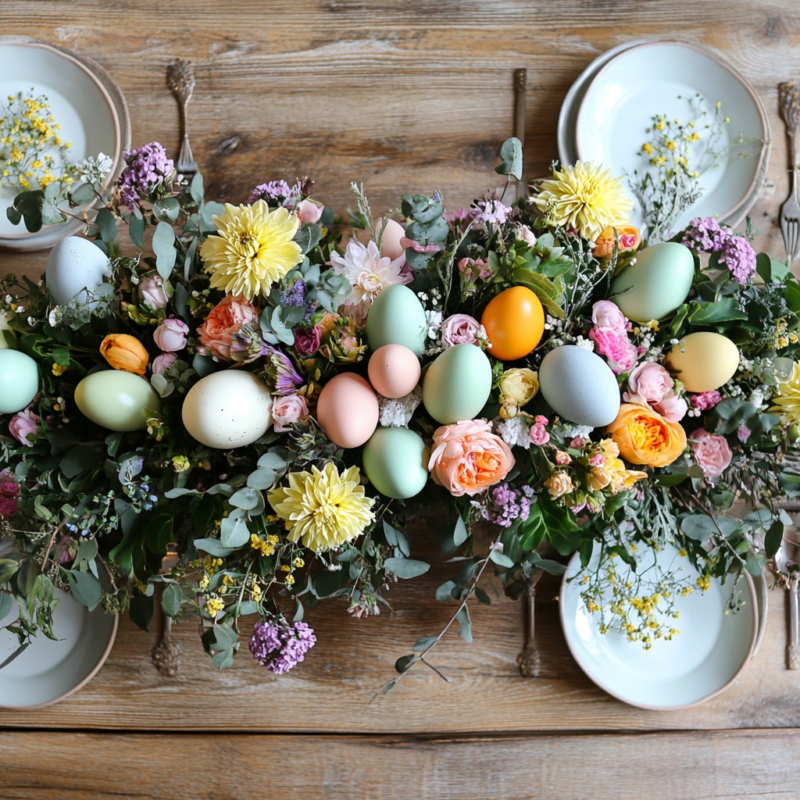 Bring your tablescape to life with this joyful Easter table centerpiece overflowing with festive charm.