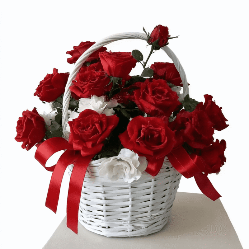 This bouquet of flowers red roses is ideal for Valentine’s Day when love deserves to be expressed with confidence and generosity. It is particularly suited for long standing relationships, milestone celebrations, or moments when feelings are deep and well established. The basket format makes it easy to present and display, turning the bouquet into an instant centerpiece that commands attention. Whether placed in a living room, dining space, or bedroom, it transforms the atmosphere with warmth and romantic intensity.
