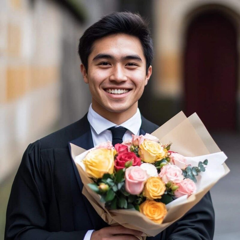 - Elegantly Wrapped: The bouquet is finished with soft, premium wrapping paper and a matching ribbon. It is ready to be given to the proud graduate.